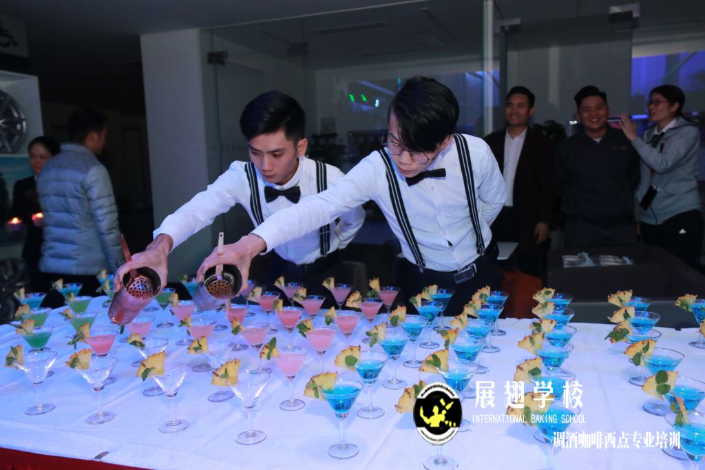 當天慶豐捷豹路虎4S店8周年慶活動由佛山展翅調酒咖啡西點培訓學校提供了專業花式調酒節目及雞尾酒。當天由調酒學員:陳仁繼、柯玉龍負責調制雞尾酒。在調制雞尾酒過程中同學們需要不斷的實踐及學習才能完善自己的學業。除了學習理論知識及實操外,做一名專業調酒師來說,需要不斷的實踐、比如酒吧實踐、各種酒會、答謝會活動實踐和學習才能更加完善自己。今天小編描述到這。接下來我們回顧一下當天慶豐捷豹路虎4S店8周年慶活動及學員調酒實踐的花絮: