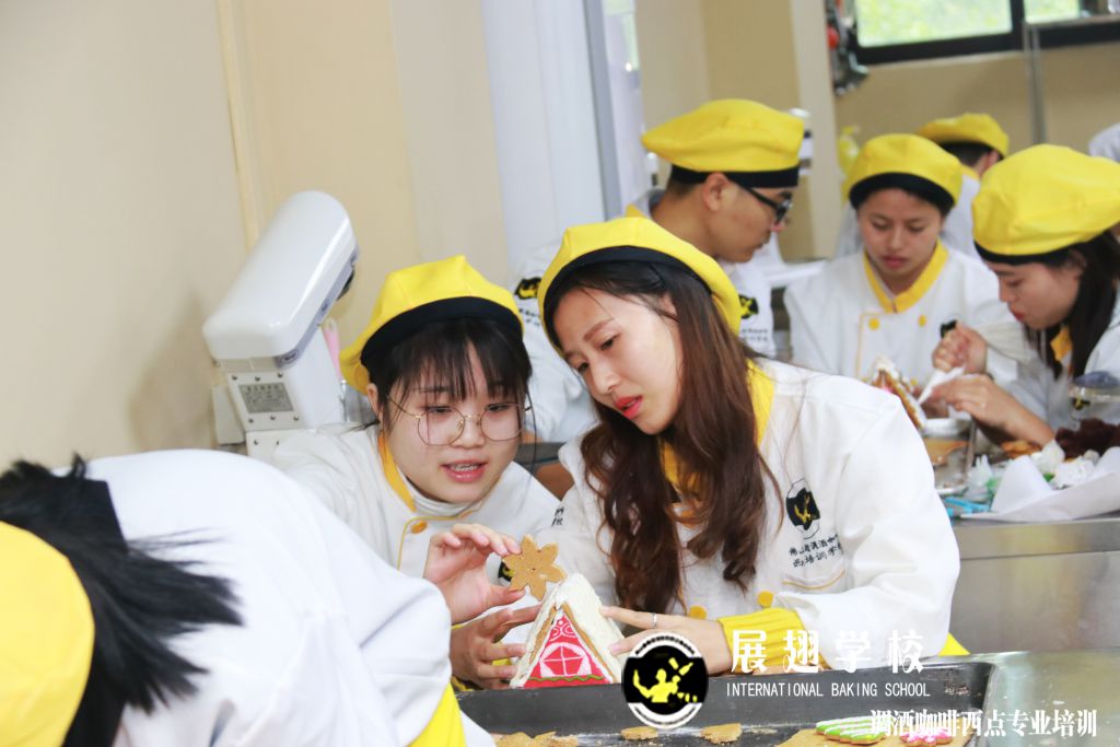 接下來(lái)看一下佛山展翅調(diào)酒咖啡西點(diǎn)培訓(xùn)學(xué)校烘焙班制作姜餅屋及姜餅花絮: