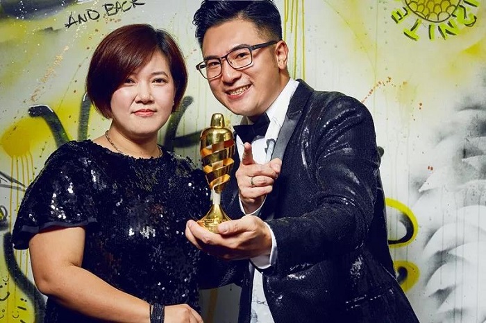 與太太在頒獎現場合照