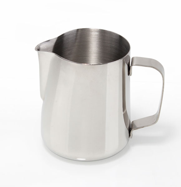拉花鋼杯口為上口窄、下底寬的尖嘴設(shè)計,較常見的容量規(guī)格有300毫升、600毫升、1000毫升等。使用不同的咖啡杯應(yīng)選擇不同容量的拉花鋼杯,才不易造成牛奶量的浪費或不足。